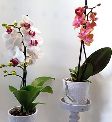 Delicate Phalaenopsis Orchid in a Ceramic Pot.