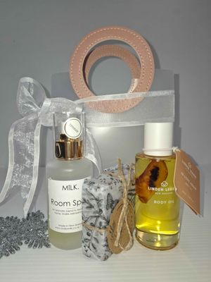 A Studio Milk Room Spray, 1x Wildflower Luxurious Goats Milk Soap and 1x Linden Leaves "In Love Again" Body Oil 100ml.