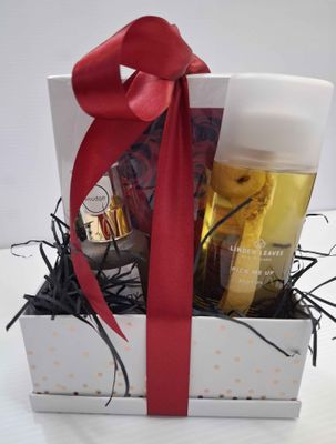 Treats for Your Valentine. Crafted in a Gift Box is Our Scilla 12 pc Valentines Box of Chocolates, Milk Studio Room and Linen Spray and The famous Linden Leaves 265ml Body Oil.