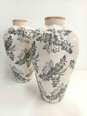 Stoneware planters and vases feature an intricate hand-stamped print that blends seamlessly into any French country or farmhouse-inspired décor. With intricate vintage detailing, this vase can be used to display fresh blooms, or dried flowers effortlessly adding a serene, nature-inspired touch to your indoor and outdoor spaces.